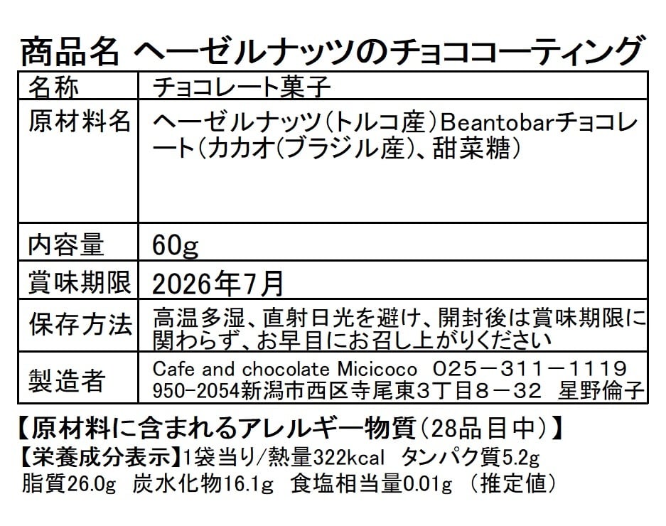 ヘーゼルナッツのチョココーティング(2026バレンタイン)